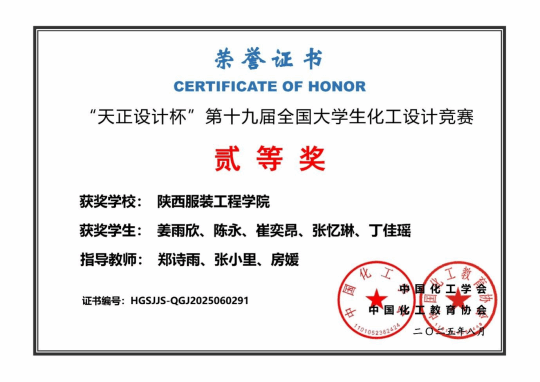 近日,第十九届全国老员工化工设计竞赛系列赛事结果相继揭晓,公司郑诗雨、张小里、房媛老师指导的员工团队凭借扎实的专业功底、创新的设计方案和出色的现场表现,一路过关斩将,先后荣获陕西省赛一等奖、西北赛区赛一等奖,最终在全国总决赛中斩获全国二等奖的优异成绩,为学校和学院赢得了荣誉。